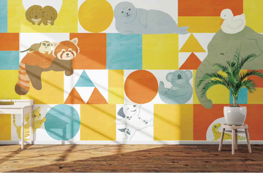 子供向けの施設や医院のキッズスペース・キッズルームなどの壁になっていたらわくわくするのでは?と思っています!